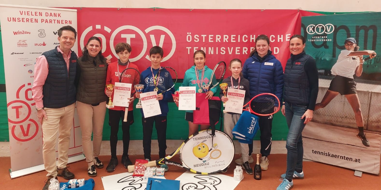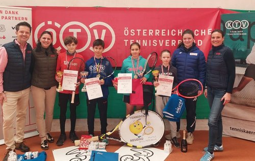 Die Jüngeren machten sich die meisterlichen Ehren im Tennisclub Neudau in Wolfsberg aus. Bei den Burschen U12 setzte sich der zweitgereihte Teodor Mihail Vasile (NÖTV) im Endspiel der Topgesetzten gegen David Richter (WTV) mit 6:3, 7:6 durch und blieb in der gesamten Turnierwoche ohne einen Satzverlust. Richter hatte dafür beim Doppelbewerb mit Alexander Dreisiebner (STTV) durch ein finales 6:4, 6:1 über Vasile und Victor Freitas (NÖTV) das bessere Ende für sich. Bei den Mädchen U12 konnte sich mit Fabiola Prause Coca gar eine Qualifikantin behaupten: Das STV-Nachwuchsass bezwang im Finale die topgesetzte Anastasia Weiler (NÖTV) mit 6:4, 6:0. Auch bei den Girls durfte die Finalistin dafür im Doppel jubeln: Dort war Weiler mit Ella Giulia Eder (STV) durch ein 6:4, 6:3 beim Endspiel der Topgesetzten gegen die zweitgereihten Leni Kirchner (TTV) und Anna Rauth (NÖTV) siegreich.