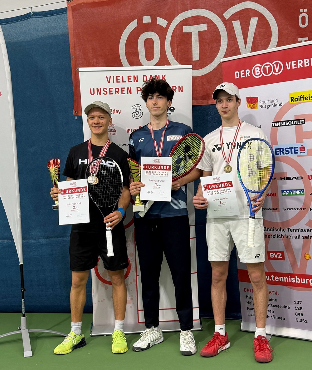 Die älteren der bereits feststehenden Meister:innen wurden beim TC Sport-Hotel-Kurz in Oberpullendorf ermittelt. Im Burgenland stand dabei eine gehörige Machtdemonstration von Ferdinand Grasl im Mittelpunkt. Denn der drittpositionierte NÖTV-Youngster fertigte im Semifinale mit einem 6:1, 6:2 über Jannik Spindler (WTV) und im Titelkampf mit einem 6:2, 6:0 gegen Sebastian Pock (STTV) die Nummern eins und zwei der Setzliste genauso im Eiltempo ab wie schon seine Gegnerschaft bis dahin. Insgesamt waren es gerade mal acht verlorene Games in vier Partien, nie mehr als zwei pro Satz. Pock/Spindler konnten sich dahingegen als Topgesetzte durch ein 7:6, 6:2 über die drittgereihten Luca Lingfeld (NÖTV) und Jannik Rochus El Filali (STTV) die Doppelkonkurrenz sichern. Bei den Mädels U16 war Kara Fronek in diesem Jahr eine Klasse für sich und schnappte sich jeweils als Topgesetzte den Doublegewinn. Im Einzelfinale zwang die Wienerin die viertgelistete Mia Neumüller (NÖTV) mit 4:6, 6:4, 6:3 in die Knie, im Doppelfinale mit ÖTV-Vertragsspielerin Julia Ehrenberger (WTV) die zweitgesetzten Yara Ortner (STTV) und Hanna Stuhr (OÖTV) mit 6:2, 6:3.