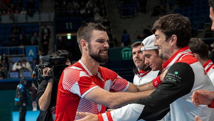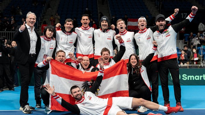 Das nicht. Denn ich habe in den letzten Jahren vom Level her jetzt nicht mehr so helfen können, würde ich sagen. Der Davis Cup war bei mir in manchen Situationen schon ein bisschen unglücklich, vor allem mit meiner körperlichen Verfassung. Als es 2019 gegen Chile ums Finalturnier gegangen ist, war ich krank und habe nicht spielen können. Beim Finalturnier 2021, das für alle mit der COVID-Situation unglücklich war, wäre sicher eine Wahnsinnsatmosphäre gewesen, da war ich am Handgelenk verletzt. Also das war nicht immer die allerglücklichste Beziehung. Es hat auch geile Events wie in Graz 2018 gegen Australien gegeben, was in meinen Tenniserfahrungen sicher ganz weit oben steht. Aber es ist schön, dass es jetzt passiert, auch wenn es im Jahr eins nach mir ist. (lächelt)