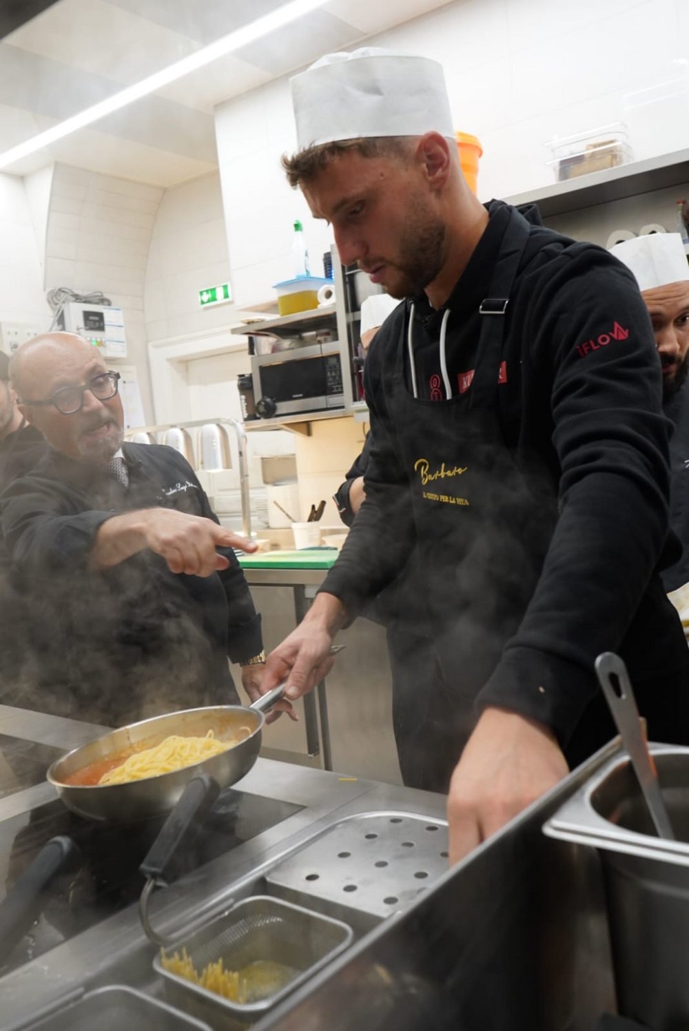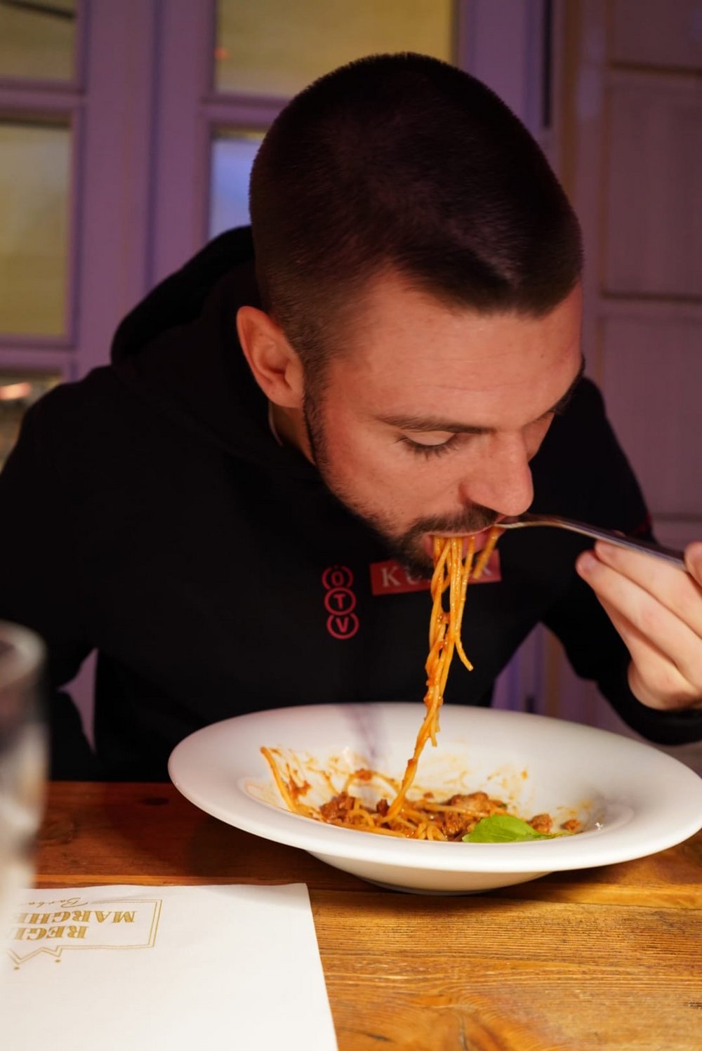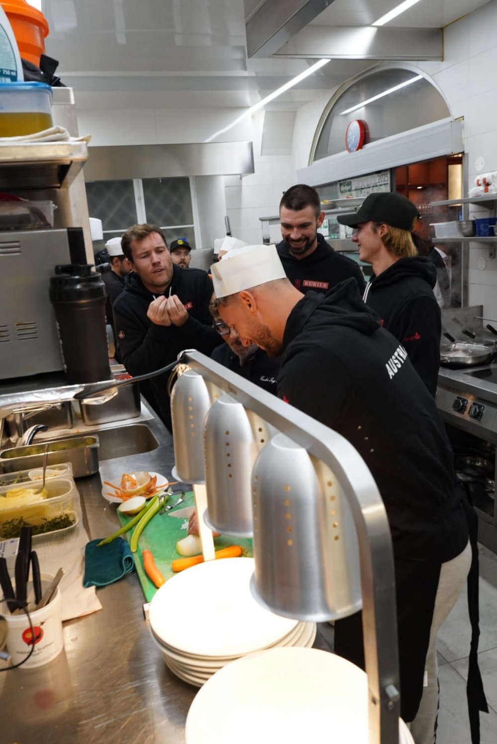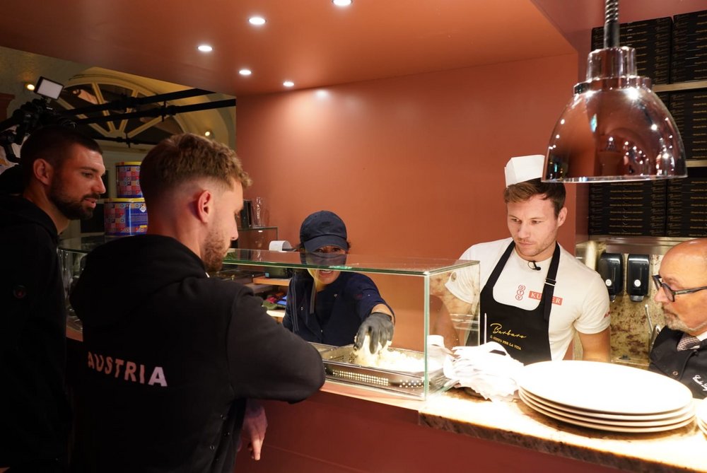 Dazu stattete die ÖTV-Mannschaft, angeführt durch ÖTV-Sportdirektor und -Davis-Cup-Kapitän Jürgen Melzer, am Rande der Erste Bank Open in Wien am Sonntag der Pizzeria Regina Margherita in der Innenstadt einen Besuch ab und legte eine Trainingseinheit der etwas anderen Art hin. Einzig Alexander Erler ließ sich entschuldigen, konnte jedoch mit dem an diesem Tag gewonnenen Doppelfinale beim ATP-250-Turnier in Stockholm einen triftigen Abwesenheitsgrund für diese Trainingssession anführen. Die Hausherren Luigi Barbaro sen. und Luigi Barbaro jun. nahmen sich in ihrem Lokal Österreichs Tennisassen persönlich an. Unter ihrer fachmännischer Anleitung versuchte sich dabei zunächst Filip Misolic, unterstützt von seinen Teamkameraden, an originalen Spaghetti Bolognese, ehe Lucas Miedler in die Kunst des Pizzabackens eingeführt wurde – was doch die eine oder andere unerwartete Challenge mit sich brachte. Aber aller guten Dinge sind bekanntlich drei: Nach zwei verkohlten Exemplaren klappte auch das und die Pizza durfte die Küche verlassen und den Gästen durch Miedler selbst serviert werden.