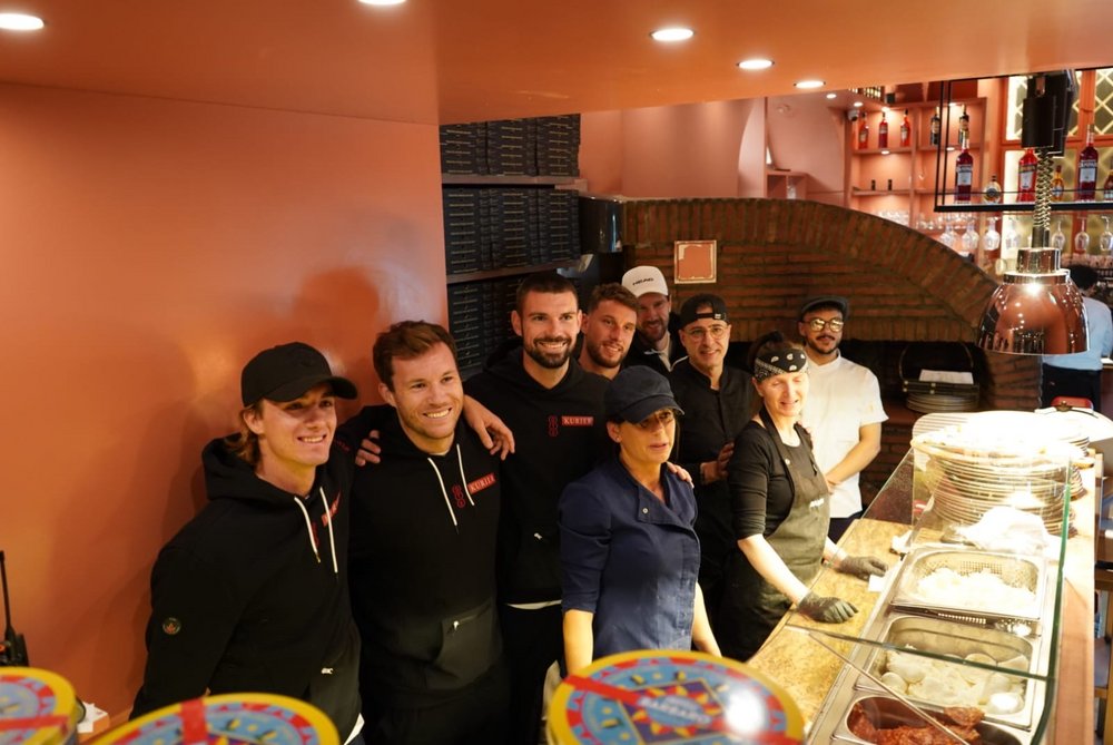 Das KURIER Austria Davis Cup Team stimmt sich in der Pizzeria Regina Margherita kulinarisch auf Bologna ein.