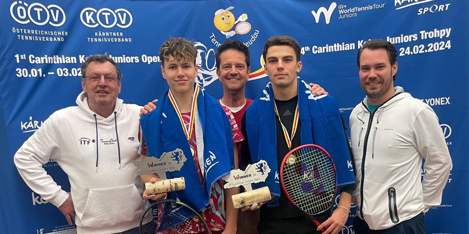 Nach je einem ITF-J60- und ITF-J30-Event in Oberpullendorf ist vergangene Woche noch ein weiteres internationales U18-Turnier in Österreich über die Bühne gegangen: Die 1st Carinthian Juniors Open by Fresacher. Bei dieser ITF-J30-Teppichveranstaltung vom 28. Jänner bis 3. Februar beim Tennisclub Neudau in Wolfsberg erzielten die rot-weiß-roten Nachwuchsasse diesmal gemischte Erfolge. Doch ganz fest in heimischer Hand war das Burschendoppel – wo mit Gustav Dressler / Timo Rosenkranz-König, den drittgesetzten Florian Doleys / Niklas Maislinger, den viertpositionierten Maurice-Noel Kaserer / Julian Platzer und Bastian Berenz / Gabriel Niedermayr sogar ausschließlich Österreicher unter die letzten Vier einzogen. Am besten lachen hatten am Ende Dressler/Rosenkranz-König, die nach zuvor drei Zweisatz-Siegen im Endspiel schließlich vom Nichtantritt von Berenz und Niedermayr profitierten. Für beide ist es der erste ITF-Jugendtitel.