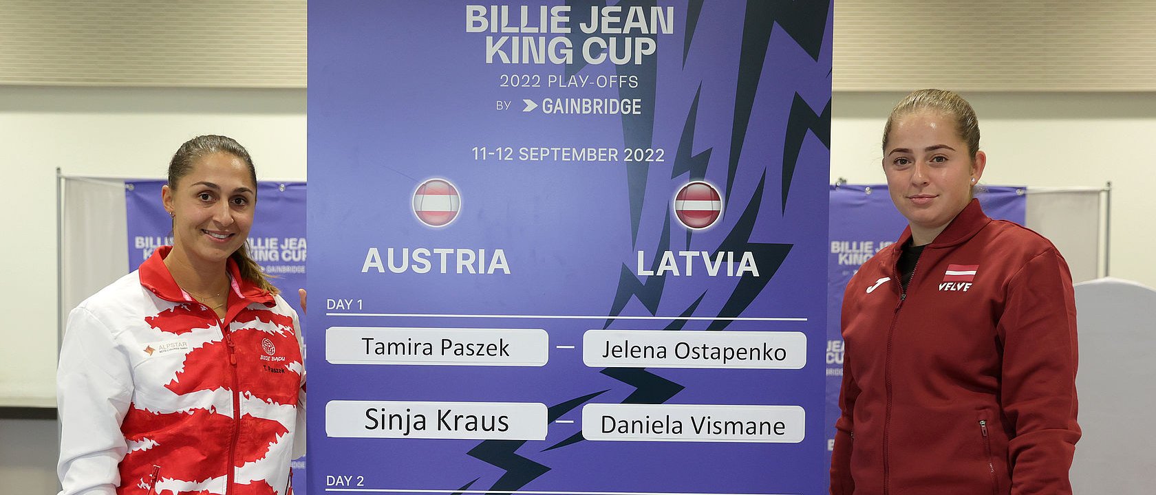 Die Katze ist aus dem Sack! ÖTV-Teamkapitänin Marion Maruska hat am Donnerstag am Vormittag beim Official Draw im Schwechater Multiversum ihre Mannschaftsaufstellung für den Billie Jean King Cup gegen Lettland offiziell verlautbart. Die Niederösterreicherin setzt beim ersten Heimspiel für das Alpstar Austria Billie Jean King Cup Team seit 2008, als man aus der damaligen Weltgruppe II abgestiegen war, im Einzel auf Sinja Kraus und Tamira Paszek. Während Kraus, durch das Fehlen von Julia Grabher, als österreichische Nummer eins im Team als gesetzt galt, gab Maruska Paszek als nomineller Nummer drei zumindest am ersten Spieltag zunächst den Vorzug gegenüber Barbara Haas (WTA 396). Sollte der Überraschungserfolg gegen die Baltinnen gelingen, würden die ÖTV-Damen im Frühjahr die Qualifikation für die Billie Jean King Cup by Gainbridge Finals 2023 spielen. Die beiden bisherigen Duelle mit Lettland gingen 2015 in Budapest (Ungarn) mit 1:2 und 2018 in Tallinn (Estland) mit 0:3 verloren.
