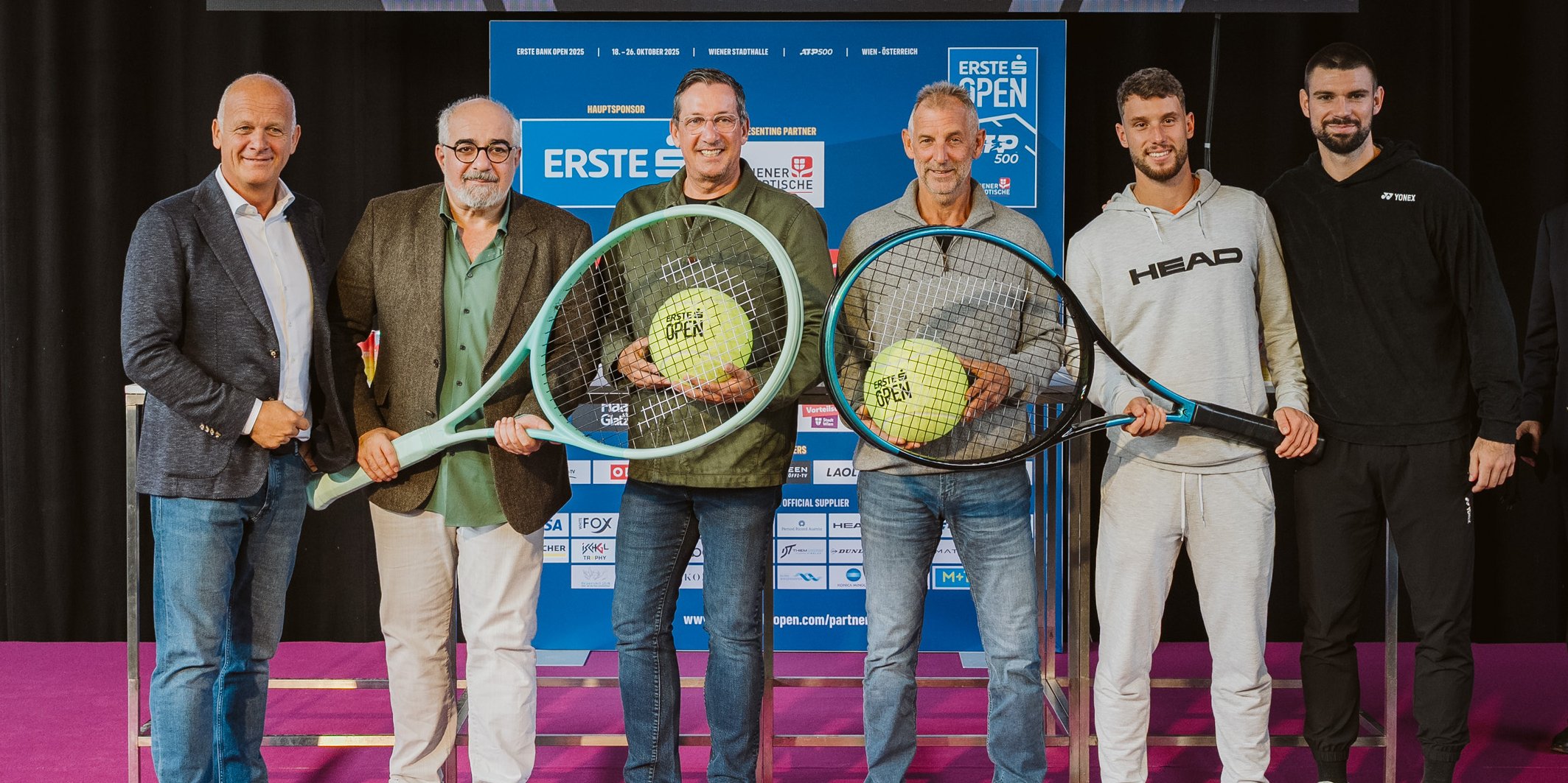 Bei der Auslosung des Hauptbewerbs der Erste Bank Open flogen am Samstag in der zweiten Matchlocation in der Marx Halle die „Wuchteln“ übers Netz! Kein Wunder, sorgten dabei doch die Kabarettisten Michael Niavarani und Viktor Gernot vor großer Fankulisse für einen unterhaltsamen Schlagabtausch. Die beiden „Glücksengerl“ zogen für das rot-weiß-rote Duo Jurij Rodionov und Filip Misolic zwei unterschiedlich hohe Auftakthürden. Während Rodionov in der ersten Runde des mit 2.736.875 Euro dotierten ATP-500-Turniers auf den als Nummer drei gesetzten Australier Alex de Minaur prallt, trifft Misolic auf den Argentinier Camilo Ugo Carabelli.