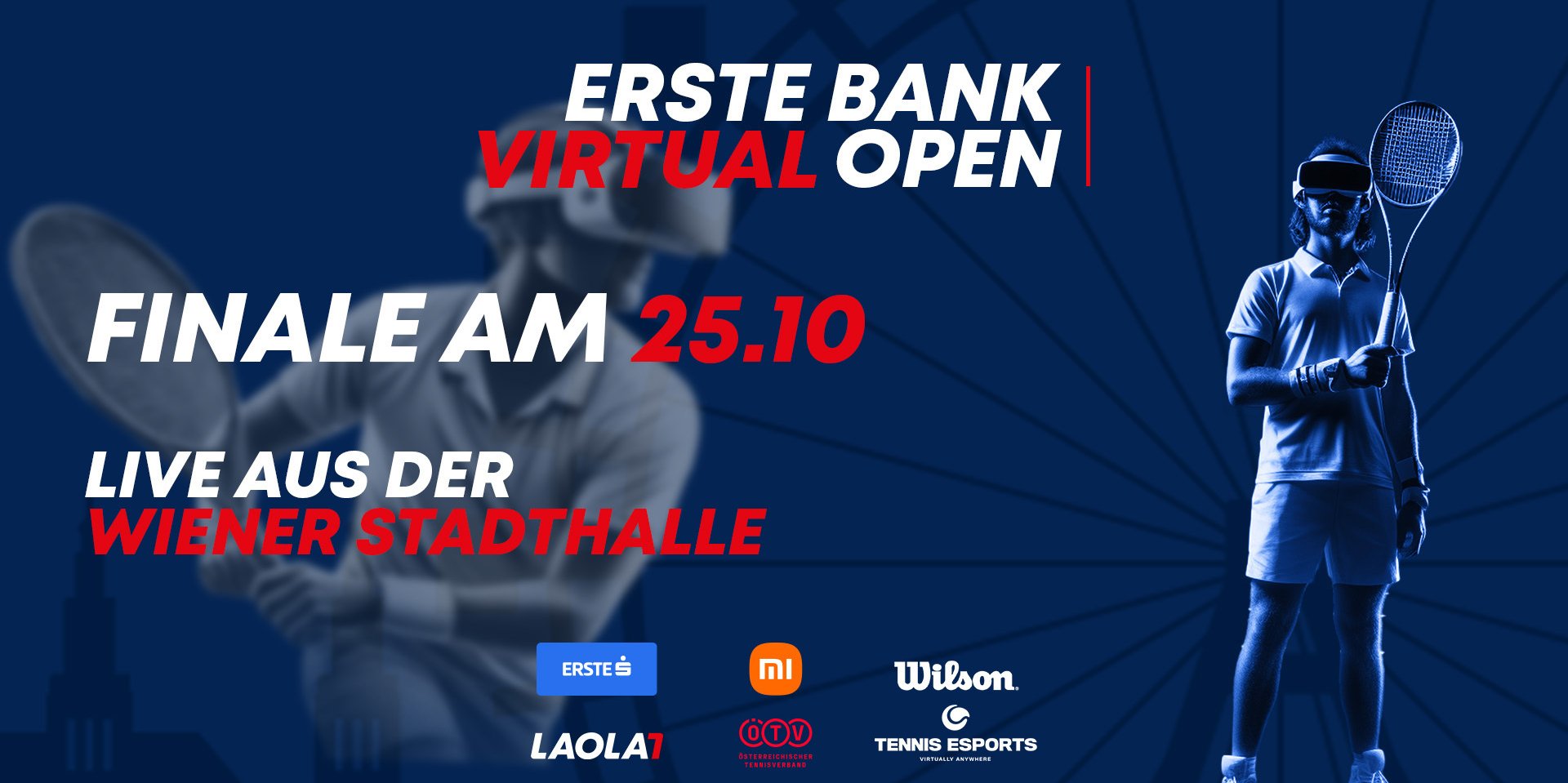 Erlebe das aufregende Finale des innovativen Virtual Reality-Tennisturniers hautnah im Studio F der Wiener Stadthalle! Am 25.10.2024 um 16:30 Uhr treten ein deutscher und ein österreichischer VR-Tennisspieler gegeneinander an, um sich den begehrten Erste Bank Virtual Open Titel zu sichern! Und das Beste? Du kannst aktiv mitmachen!