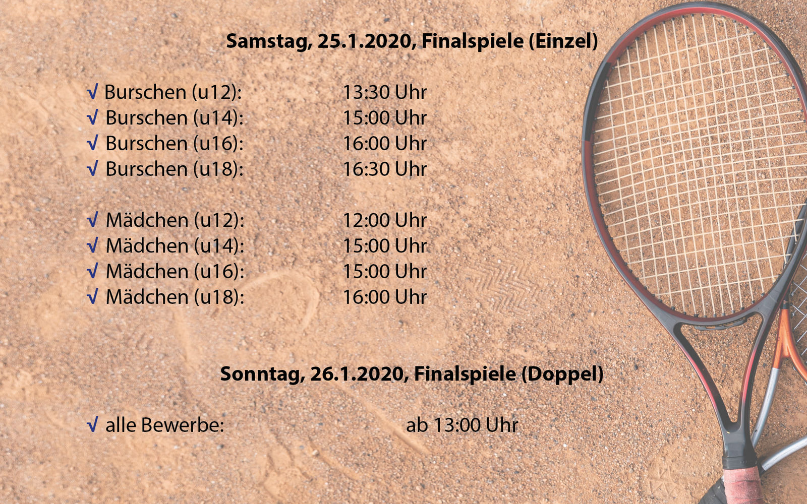 Am kommenden Wochenende gehen mit den Finalspielen die WTV-Jugendmeisterschaften zu Ende. Über 150 Spielerinnen und Spieler werden dann bis zum 26. Jänner auf zehn Plätzen auf der Anlage des Colony Clubs um die Titel gekämpft haben. Am Samstag (25.1.2020) werden sämtliche Einzeltitel vergeben werden, am Sonntag (26.1.2020) die restlichen Doppeltitel. Für die Zuschauer gibt es - zusätzlich zu freiem Eintritt und Top-Gastronomie - ein entscheidendes Goodie. "Der WTV freut sich sehr, an diesem Wochenende Wiens beste Spielerinnen und Spieler präsentieren zu können", so Turnierorganisator Sebastian Fisar. "Life in action hat man nicht oft die Gelegenheit, soviele Top-Talente auf einmal sehen zu können."