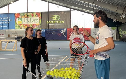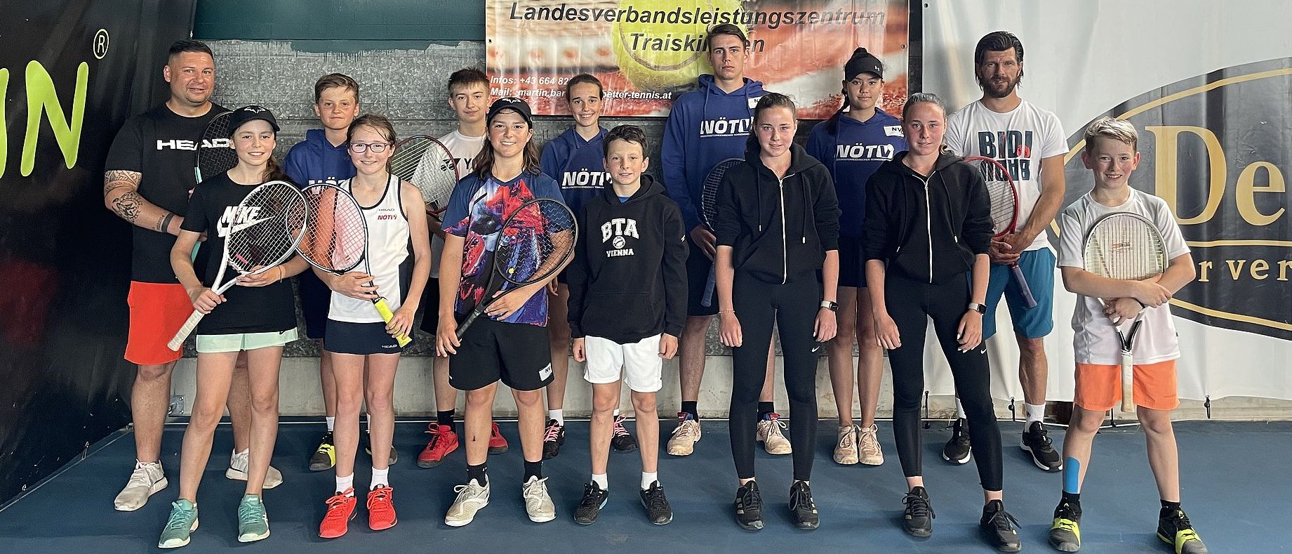Bei seiner Österreich-Rundreise „Jürgen Melzer on Tour“ durch alle Landesverbände hat ÖTV-Sportdirektor und -Davis-Cup-Kapitän Jürgen Melzer am Montag den NÖTV im Leistungszentrum Traiskirchen besucht. 13 NÖTV-Kaderspielerinnen und -Kaderspieler durften am Nachmittag unter der Anleitung des Ex-Weltranglisten-Achten trainieren, bekamen wertvolle Tipps für ihr Spiel und waren topmotiviert im Einsatz. Gearbeitet wurde auf drei Plätzen parallel, wobei Melzer noch Trainer-Unterstützung durch NÖTV-Kidscoach Martin Bartosch und Better-Tennis-Academy-Coach Marko Milovanovic hatte. Dadurch war ein tolles Trainingsprogramm auf allen Courts sichergestellt. Alle Mädels und Burschen waren mit vollem Einsatz bei der Sache.