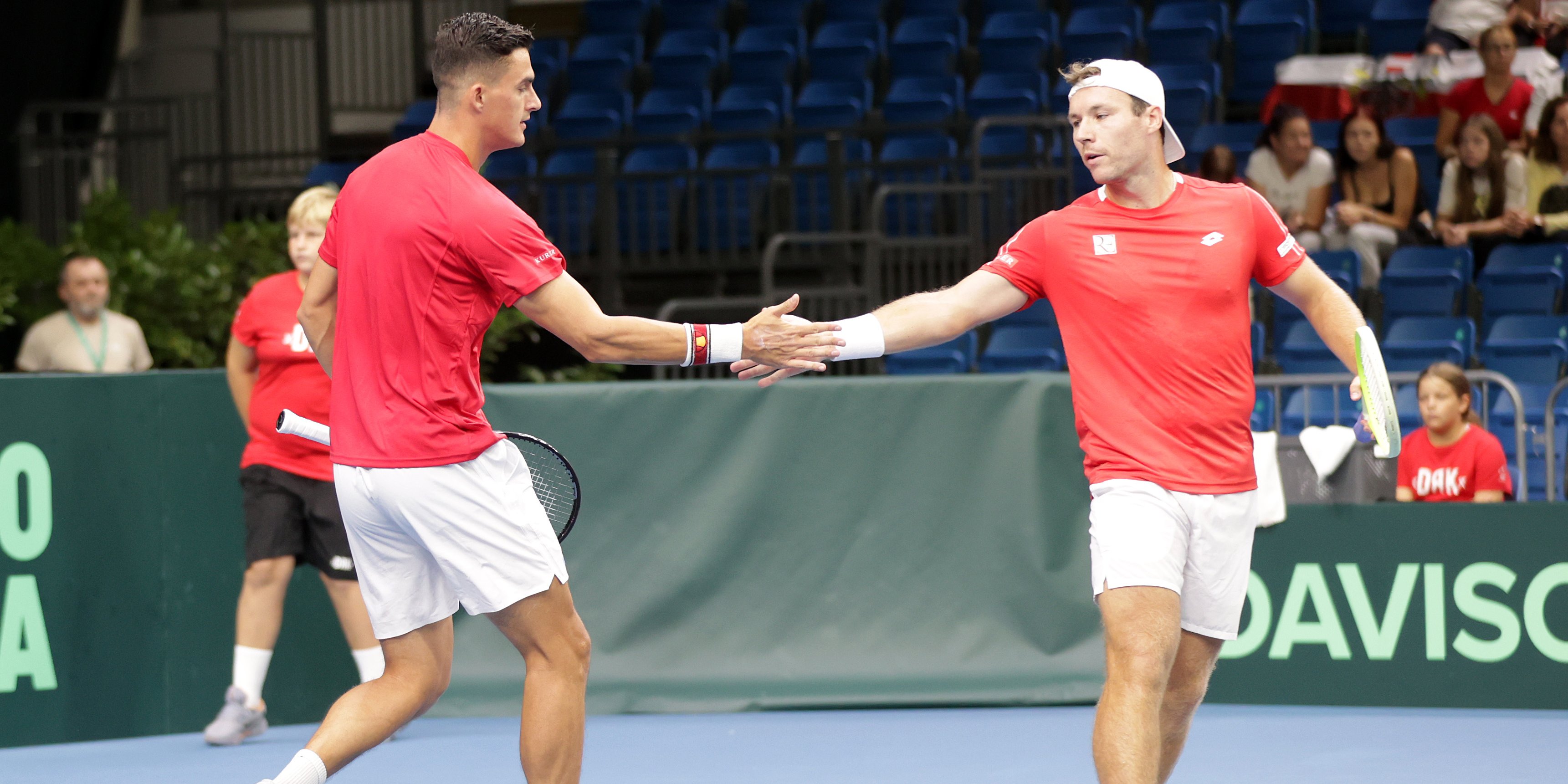 Miedler/Erler gingen als eingespieltes Duo mit der 2:0-Führung und einer 6:1-Davis-Cup-Doppelbilanz im Rücken als Favoriten ins Match gegen Marozsán/Piros. Doch von Anfang verlief die Partie auf Messers Schneide. Miedler/Erler machten aus einem 2:4-Rückstand ein 5:4 und 6:5 und hatten bei diesem Stand bei 15:40 sogar zwei Satzbälle, im Tiebreak lagen sie zudem 4:2 voran, durch fünf Punkte in Serie drehten Marozsán/Piros aber noch den Eröffnungssatz. Im zweiten Abschnitt wehrten Miedler/Erler bei 3:4 dann die einzige Breakmöglichkeit ab, zogen auch bei 4:5 und 15:30 nochmals den Kopf aus der Schlinge. In der Kurzentscheidung hatten sie jedoch abermalig das Nachsehen. „Ich glaube, wenn wir das bei 6:5 im ersten Satz machen, dann schaut es anders aus. Aber es ist jetzt halt so, wie es ist. Der zweite Satz war ziemlich eng, hin und her, und in den letzten drei, vier Punkten waren sie einfach besser“, konstatierte Erler. Über die starke Piros-Vorstellung zeigte sich Miedler keinesfalls überrascht. „Im Endeffekt haben wir 7:6, 7:6 verloren. Die haben gut gespielt“, befand Österreichs derzeit stärkster Doppelspieler. „Wir haben aber auch schon genug enge Partien gewonnen. Heute haben wir leider mal verloren – wobei vor allem Piros, finde ich, hervorragend gespielt hat.“