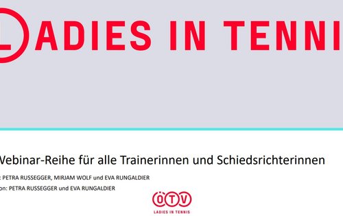 Anmeldung: per E-Mail an ladiesintennis@oetv.at (Angabe Webinar 1, 2 oder 3 oder mehrere/alle). Der Einladungslink wird am Vorabend des jeweiligen Termins per E-Mail geschickt.