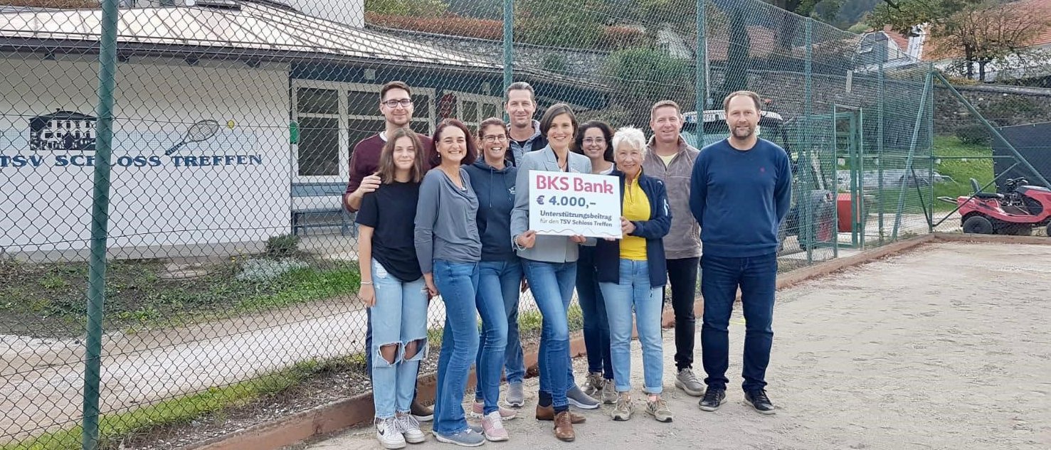 Diese Aktion war erfreulicherweise von Sport, Politik und Wirtschaft vereint mitgetragen worden. So kamen letztlich immerhin 4000 Euro Reinerlös zusammen, die dem Vorstand von TSV Schloss Treffen am Dienstagnachmittag nun 1:1 übergeben worden sind. Diese Summe kann dringend benötigt werden, denn die Wiederherstellungsarbeiten an der mit drei Freiplätzen ausgestatteten Tennisanlage sind bereits im vollen Gange. „Wir freuen uns, gezielt jetzt vor Ort unterstützen zu können, wo gerade der Wiederaufbau erfolgt“, erklärte ÖTV-Vizepräsidentin Romauch.