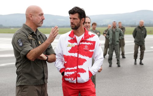 Nach einer kurzen Einweisung in den Fliegerhorst und in die Flieger- und Fliegerabwehrtruppenschule folgte noch ein Gruppenfoto mit den in Langenlebarn stationierten Luftfahrzeugen. Der Besuch dauerte nur knapp eineinhalb Stunden, ehe sich das Team wieder der Vorbereitung auf den Länderkampf widmen musste. Dennoch zeigte sich Kapitän Melzer beeindruckt: „Ich könnte stundenlang zuhören. Die Technik, die Ausbildung – das geht alles nicht nebenbei. Es war beeindruckend, zu sehen, wie akribisch dort gearbeitet wird und was da dahintersteckt, wie genau die Ausbildung und Selektion ist. Es ist alles sehr professionell. Man darf halt nicht vergessen: Wenn da Fehler passieren, kann das eben Menschenleben kosten. Das war sehr interessant.“ Am meisten beeindruckt habe den Ex-Weltklassespieler aber „eindeutig der Blackhawk-Hubschrauber“, dessen Startvorgang das ÖTV-Team aus nächster Nähe beobachten konnte.
