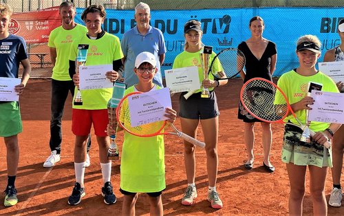 Strahlender Sonnenschein und strahlende Gesichter bei den Siegerinnen und Siegern - am Sonntag ging das Masters des ÖTV Bidi Badu Jugend Circuit presented by kronehit auf der Anlage des UTC La Ville in Wien zu Ende. Jeweils acht Einzel-SpielerInnen hatten sich auf sechs Stationen plus den Österreichischen Meisterschaften für das Masters qualifiziert, in den Doppeln traten je vier Paarungen im Round-Robin-Modus an.