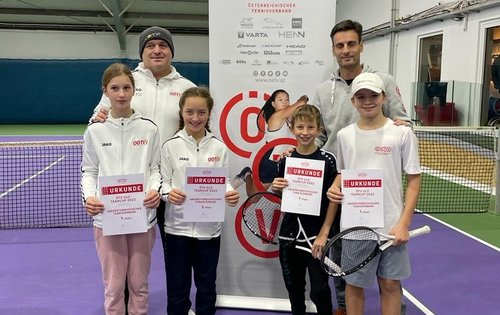Nach zweijähriger Coronapause hat der ÖTV U12 Team Cup vom 15. bis 18. Dezember in Oberpullendorf heuer wieder stattfinden können. Aufgrund der Absage der Vorarlberger Auswahl wurde auf den neu errichteten Hartplätzen der Tennisakademie Burgenland im TC Sport-Hotel-Kurz in zwei Vierergruppen gespielt: in Gruppe A mit dem Gastgeber BTV, STTV, NÖTV und OÖTV, in Gruppe B mit WTV, KTV, STV und TTV. Als jeweils Gruppensieger bestritten die BTV- und WTV-Jugend am letzten Sonntag das Finale – mit dem besseren Ende für die Hauptstädter (mit Kian Kren, Vito Gregorich, Misha Rees, Kara Fronek, Julia Ehrenberger und Amelie Markelic), die sich nach einem 3:3 in einem äußerst spannenden Titelkampf aufgrund des positiven Satzverhältnisses von 8:7 durchsetzen konnten. Dem burgenländischen Team (Anton Kahlig und Julian Reisner bei den Burschen, Lea Haider-Maurer und Isabella Hauenschild bei den Mädchen) blieb letztlich der gute zweite Platz.