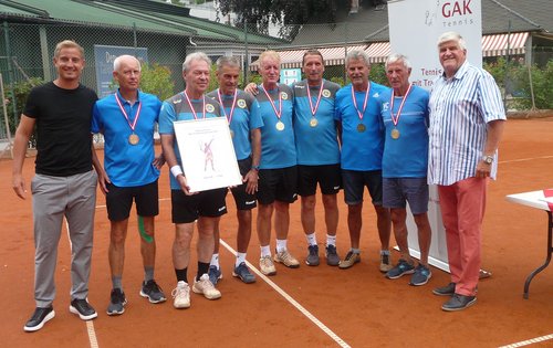 Vergangene Woche standen in der Senioren-Bundesliga bei den Herren die Entscheidungen in den Altersklassen 65 und 70 an. Beide Titel gingen nach Wien, an den Vienna Football-Club. In der Altersklasse 65 wurden die Wiener ihrer Favoritenrolle gerecht und waren in Graz beim GAK nach den Einzelspielen bereits mit 4:1 in Führung, die Doppel wurden deshalb nicht mehr gespielt. Bei den Herren 70 hatte der Vienna Football-Club Heimvorteil und gewann überlegen gegen die Mannschaft von LUV Graz, auch hier war das Finale bereits nach den Einzeln mit 4:1 entschieden.