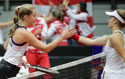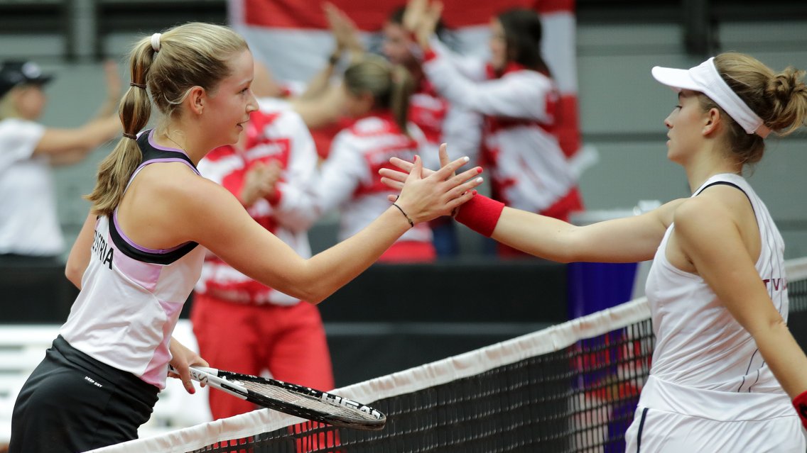 Nach den ersten beiden Einzeln im Billie Jean King Cup gegen Lettland steht es in Schwechat 1:1.
