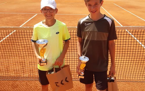 Ein weiteres Ausrufezeichen konnten die Wiener Talente Kian Kren und Kara Fronek beim U12 Tennis Europe Kat.1 Event in Koper Slowenien setzen. Beide überzeugten mit Spitzenleistungen und bewiesen erneut ihre Konkurrenzfähigkeit bei hochkarätig besetzten Events auf europäischer Ebene. Dabei gelang Kian Kren mit vier meist souveränen Siegen ohne Satzverlust der Einzug ins Endspiel. Erst dort musste er sich seinem bärenstark agierenden Landsmann Anton Kahlig geschlagen geben. Im Doppel lief es sogar noch besser. Hier dominierten Kren und Kahlig gemeinsam die Konkurrenz und fertigten ihre Gegner ein ums andere Mal glatt in zwei Sätzen ab. Im Finale erwischte es die rumänisch-serbische Paarung Lucas Alexandru Milos und Pavle Stojiljkovic. Mit 6:2, 6:2 wurden diese von Kren/Kahlig eliminiert und die österreichische Paarung durfte damit den viel umjubelten Turniersieg feiern.