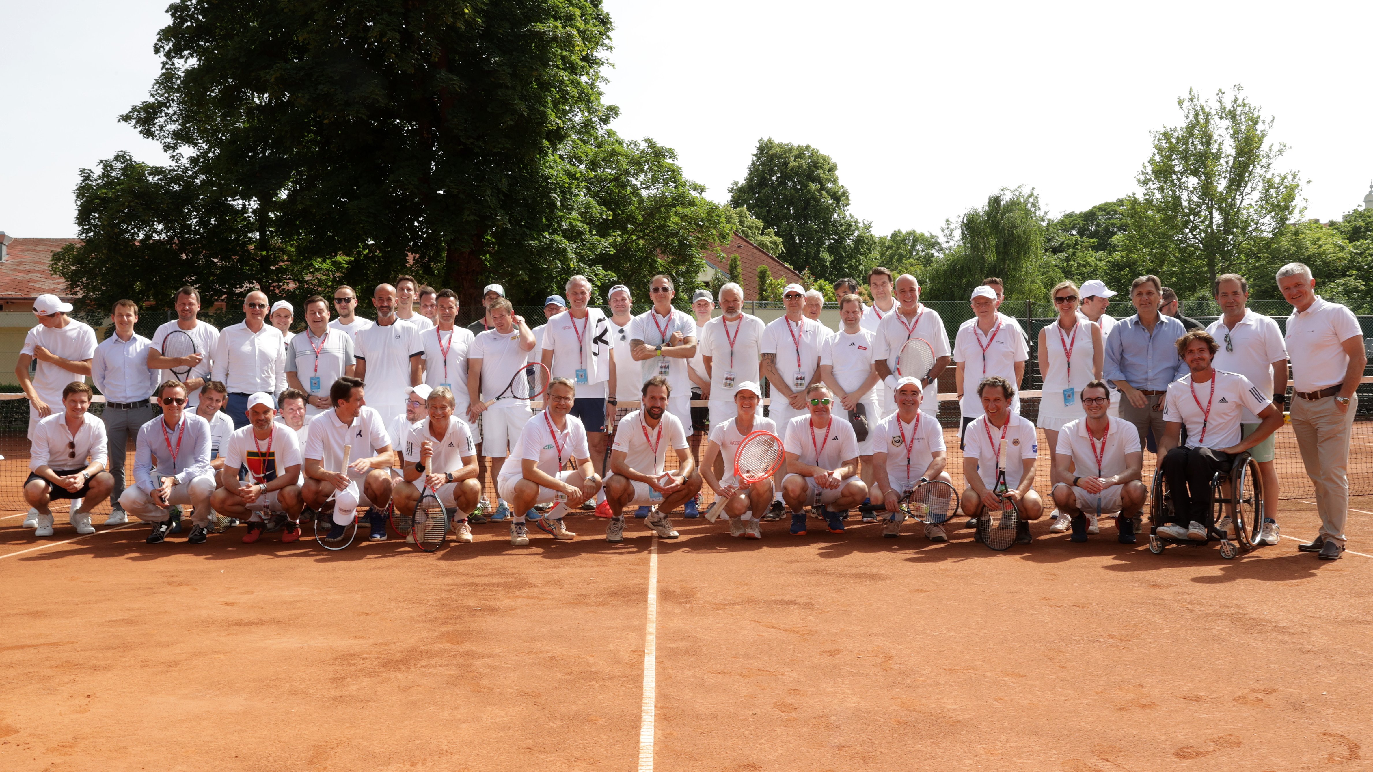 Beim Doppelturnier stand natürlich der Spaß im Vordergrund, die Siegerinnen und Sieger wurden allerdings dennoch gefeiert. Bei den Damen gewann Elizabeth Umdasch vor den ÖTV-Granden Maruska und Romauch. Bei den Herren setzte sich Andreas Janka vor Norbert Höfling und Rainer Rößlhuber durch. Unter großem Applaus der Gäste wurde im Zuge des exzellenten Abendmahls die Siegerehrung vorgenommen, ehe auch noch eine Charity-Auktion mit zwei tollen Preisen durchgeführt wurde, unter der hervorragenden Leitung von ÖTV-Präsident Ohneberg und ÖTV-Geschäftsführer Wirtschaft Schweda. So gab es, dank Alexander Andreadis von STAR.WINE, eine signierte 18-Liter-Flasche des Weins „DI.VINO ROSSO“ vom Weingut des Musikstars Zucchero in Ligurien zu erstehen. Zudem stellte Kurator Alexander Giese dankenswerterweise das Gemälde „Wimbledon 2021“ von Künstler Laurent Ajina zur Versteigerung zur Verfügung. Insgesamt brachten die Preise 8100 Euro ein.