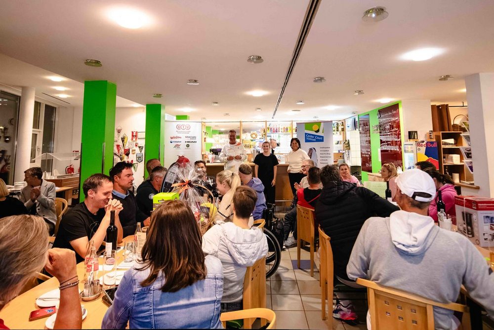 Nach einer Stärkung mit einem hervorragenden Grillbüffet von Tom’s „Tut Gut“-Gastronomiebetrieb wurde die Sieger:innenehrung von ÖTV-Geschäftsführer Wirtschaft Thomas Schweda und NÖTV-Präsidentin Petra Schwarz durchgeführt, gemeinsam mit Veranstalter Christian Roth, der danach auch die Tombola leitete. Die Gewinner:innen und Platzierten erhielten edle Weine vom Gut Lukas Markowitsch. Bei der Tombola gab es Karten für die Erste Bank Open in der Wiener Stadthalle und für Erste Bank Open 2 Go in der Marx Halle, Kabaretttickets für das CasaNova Vienna, HEAD-Tasche und -Racket, einen Yonex-Rucksack, Dehner-Gutscheine, einen Tom’s „Tut Gut“-Restaurantgutschein, feine Süßwaren vom Schoko Laden am Schwedenplatz und von Bonbons Neubaugasse, TennisPoint-Gutscheine, INTERSPAR-Küchengeräte, ein HEAD-Paket von Center Court Südstadt und einen ÖTV-Jumboball, signiert vom KURIER Austria Davis Cup Team, zu gewinnen. Der gesamte Reinerlös der Veranstaltung kommt auch in diesem Jahr dem ÖTV-Rollstuhltennisreferat zugute.
