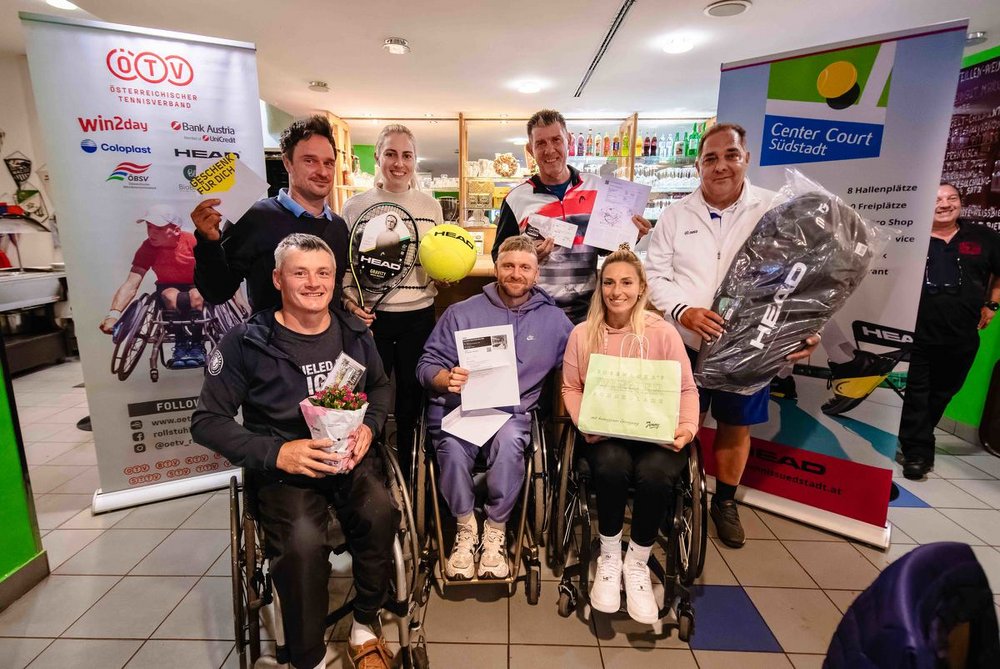 Am 30. September war’s wieder so weit: Der schon traditionsreiche win2day Wheelchair Tennis Team Cup ist im Center Court Südstadt in Brunn am Gebirge über die Bühne gegangen. Auch bei der heurigen Auflage waren bei sonnigem Herbstwetter zahlreiche Teilnehmer:innen am Start – darunter viele bekannte Gesichter wie Kabarettist Viktor Gernot, Fußballlegende Andreas Herzog, Ex-ATP-Profi Ronald Düller (Vorsitzender des Vorstands PKE Holding AG), ÖTV-Geschäftsführer Wirtschaft Thomas Schweda, ÖTV-Sportkoordinatorin und -Billie-Jean-King-Cup-Kapitänin Marion Maruska, NÖTV-Präsidentin Petra Schwarz, Ex-ÖTV-Generalsekretär Martin Reiter, Seniorentennisgröße Manfred Hundstorfer, die rot-weiß-roten Rollstuhltennis-Aushängeschilder und vielfachen Staatsmeister:innen Nico Langmann, Christina Pesendorfer, Josef Riegler und ÖTV-Rollstuhltennisreferent Roman Zechmeister und viele mehr. Sie alle machten die beliebte Veranstaltung erneut zu einem besonderen Erlebnis, bei dem der Spaß nicht zu kurz kam.